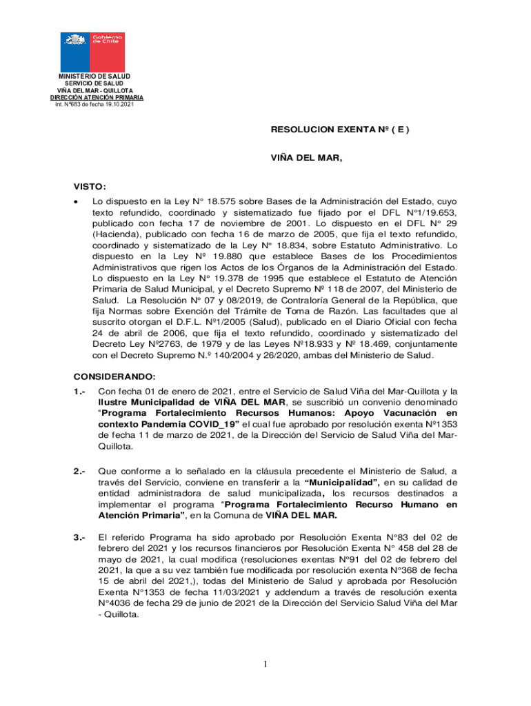 MINISTER DE SALUDSERVICIO DE SALAD VIA DEL MAR QUOTA DIRECTION STENCIL PRIM ARIA Int. N683 de tech 19.10.2021RESOLUCION EVENT N (E)VIA DEL MAR, VITO: Lo dispute en la La N 18.575 sober Bases de la