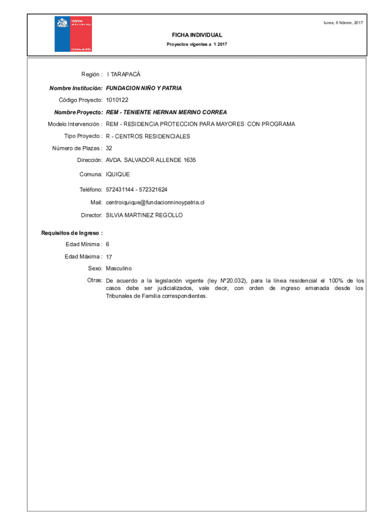Get the free FICHA INDIVIDUAL REM - Sename