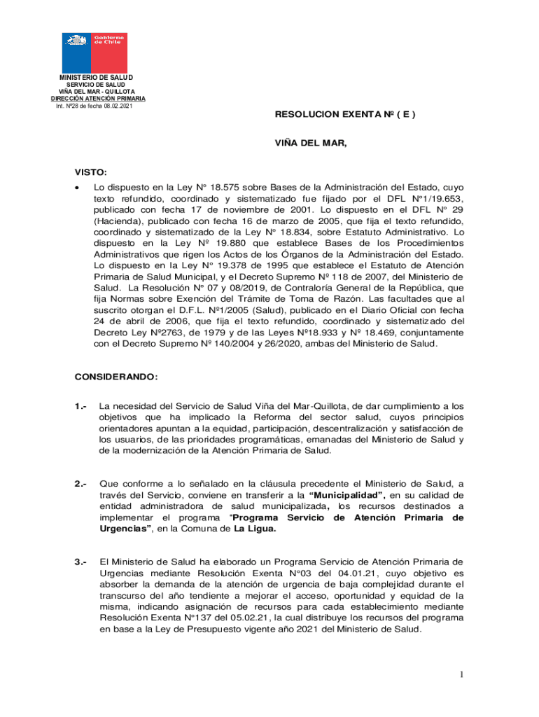 MINISTER DE SALAD SERVICE DE SALAD VIA DEL MAR QUOTA DIRECTION STENCIL PRIM ARIA Int. N28 de tech 08.02.2021RESOLUCION EVENT N (E)VIA DEL MAR, VITO: Lo dispute en la La N 18.575 sober Bases de la
