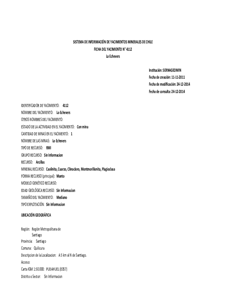 Get the free Ficha del yacimiento N 4112 Lo Echevers - Sernageomin