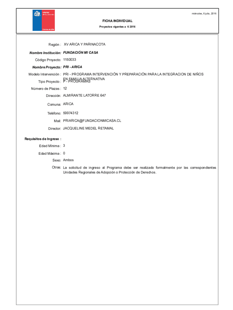Get the free Nombre Institucin:FUNDACIN MI CASA Nombre Proyecto: PRI - ARICA