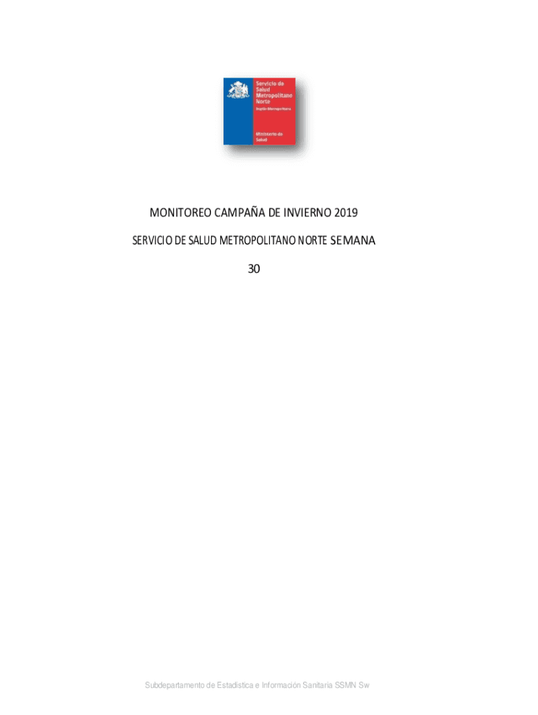MONITORED CAMP AA DE INFERNO 2019 SERVICE DE SALAD METROPOLITAN NORTH DEMAND 30Subdepartamento de Statistics e Information Sanitarian SSM Resumed INFORMED À la DEMAND 30 Con El property DE similar