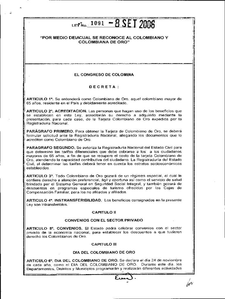 , o, .\” POR MEDIA Glacial SE ECONOMY AL COLOMBIAN DE OR\” YES CONGRESS DE COLOMBIADECRETAARTICULO 1. Se engender Como Colombian ode Or, Raquel Colombian 65 AOS, residents en el Pas y debridement