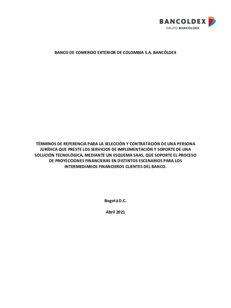 BANCO DE COMER CIO EXTERIOR DE COLOMBIA S.A. BANCLDEXTRMINOS DE REFERENCE PARA LA SELECTION Y CONTRATACIN DE RNA PERSONA JURIDICAL QUE PRESTO LOS SERVICES DE IMPLEMENTATION Y SPORTS DE RNA SOLUTION