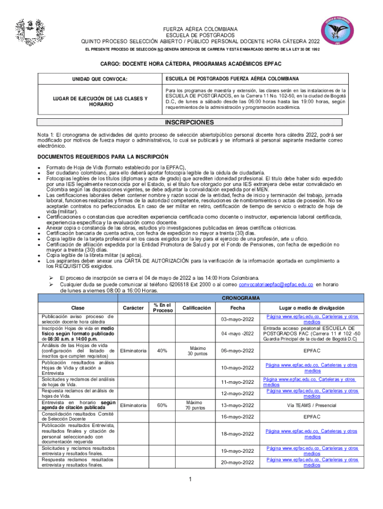 GUERRA AREA COLOMBIAN ESTELA DE POSTGRADS QUITO PROCESS SELECTION ALBERTO / PBL ICO PERSONAL DOCENT HORA TERRA 2022 EL PRESENT PROCESS DE SELECTION NO GENERA DIRECTOR DE CARRERA Y EST MERCADO DENT