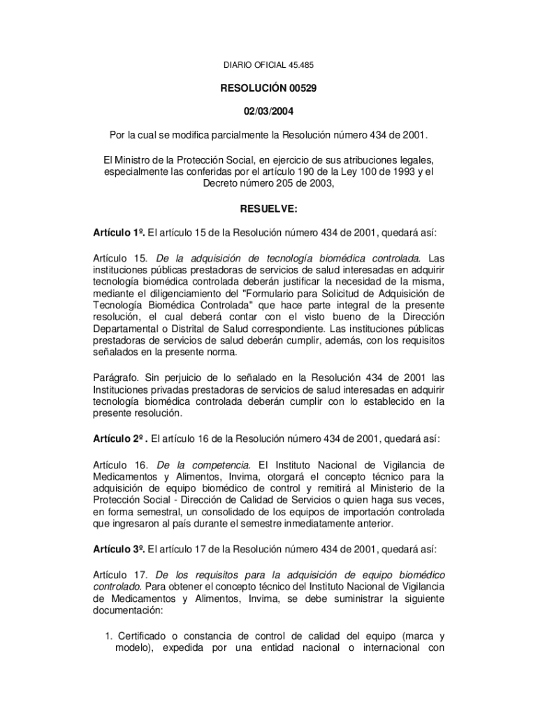 DARIO OFFICIAL 45.485RESOLUCIN 00529 02/03/2004 POR la coal SE modified Parliament la Resolution Nero 434 DE 2001. El Ministry de la Protection Social, en Jericho de SUS attributions legals, especialmente
