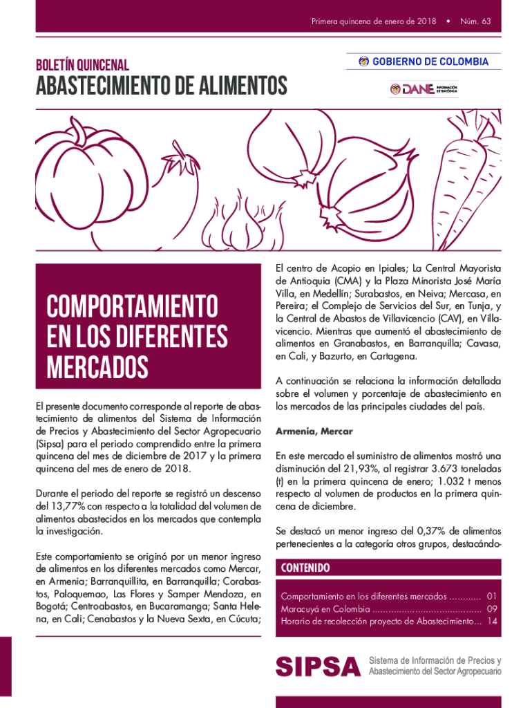 Primer quince de Nero de 2018Nm. 63BOLETN QUINCENALABASTECIMIENTO DE ALIMENTOSComportamiento en Los differences Mercado El present document correspond all report de abastecimiento de aliments Del
