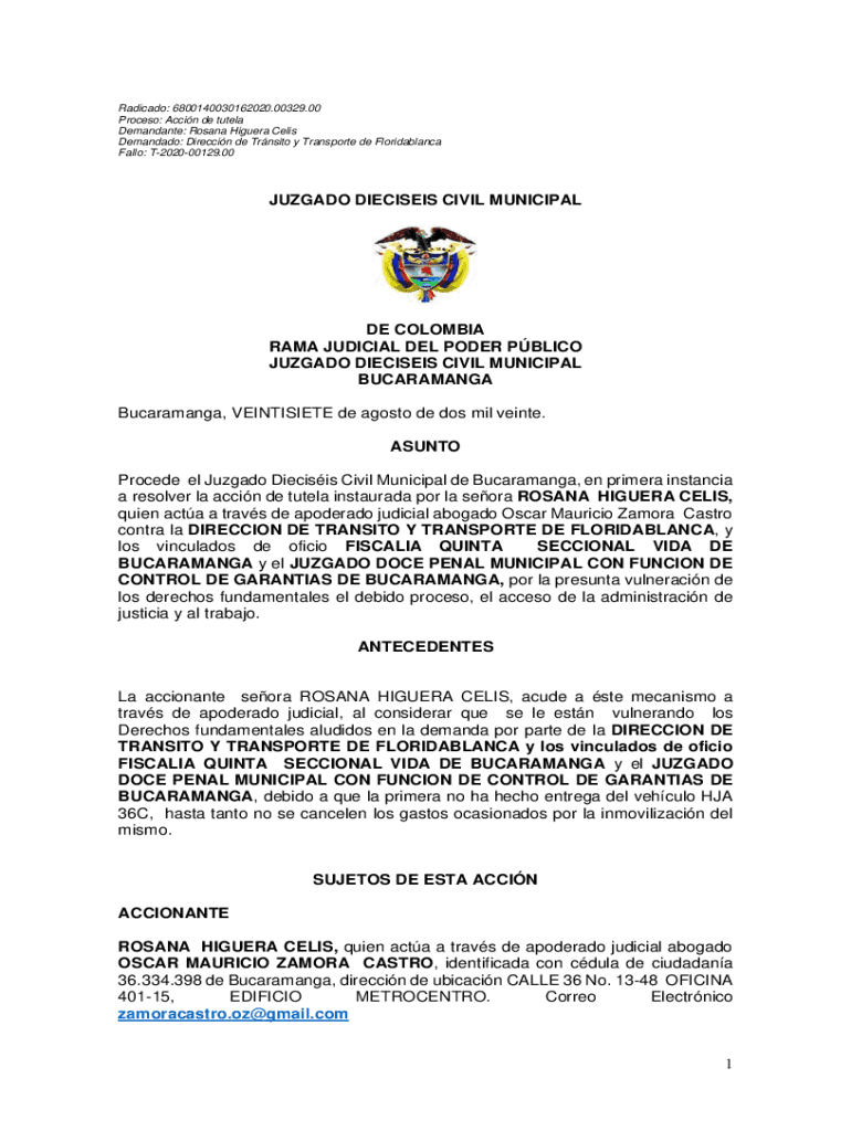 Demand ado: Direction de Trnsito y Transport de Floridablanca