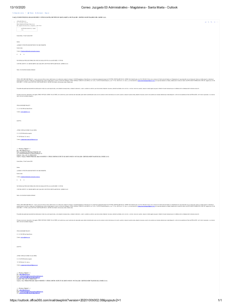 13/10/2020 Responder a todosCorreo: Jurado 03 Administrative Magdalena Santa Marta Outlook Eliminate No deseadoBloquearFwd[3]: POWER PROCESS JE LKA MON TAO Y OT ROS CONTRA DISTRICT DE SANTA MARTA