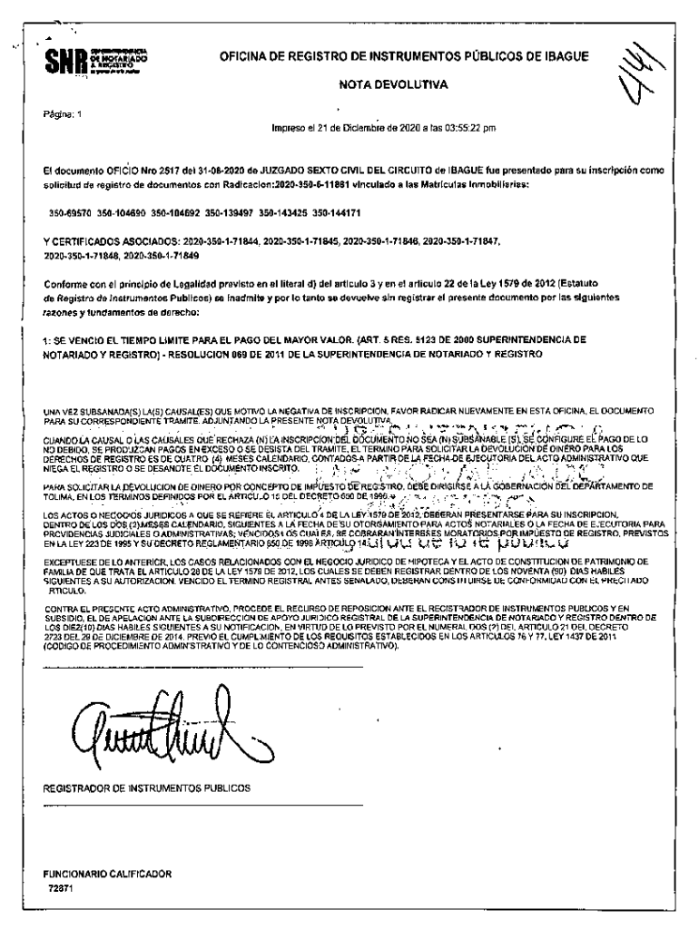 Silil2failOOTAIIIIX)OFFICIAL DE REGISTRY DE INSTRUMENTS POLICES DE !VAGUE NOT DEVOLUTIVAPgina: 1 Impress El 21 de December de 2020 a leis 03:55:22 Mel document OFId10 NRO 2517 Del 31082020 de JURADO