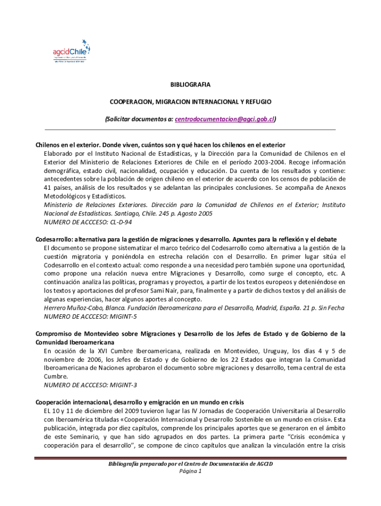 (Solicitor documents a: centrodocumentacion@agci.gob.cl)Chile nos en El exterior. Done given, cantos son y EU haven Los Chileans en El exterior