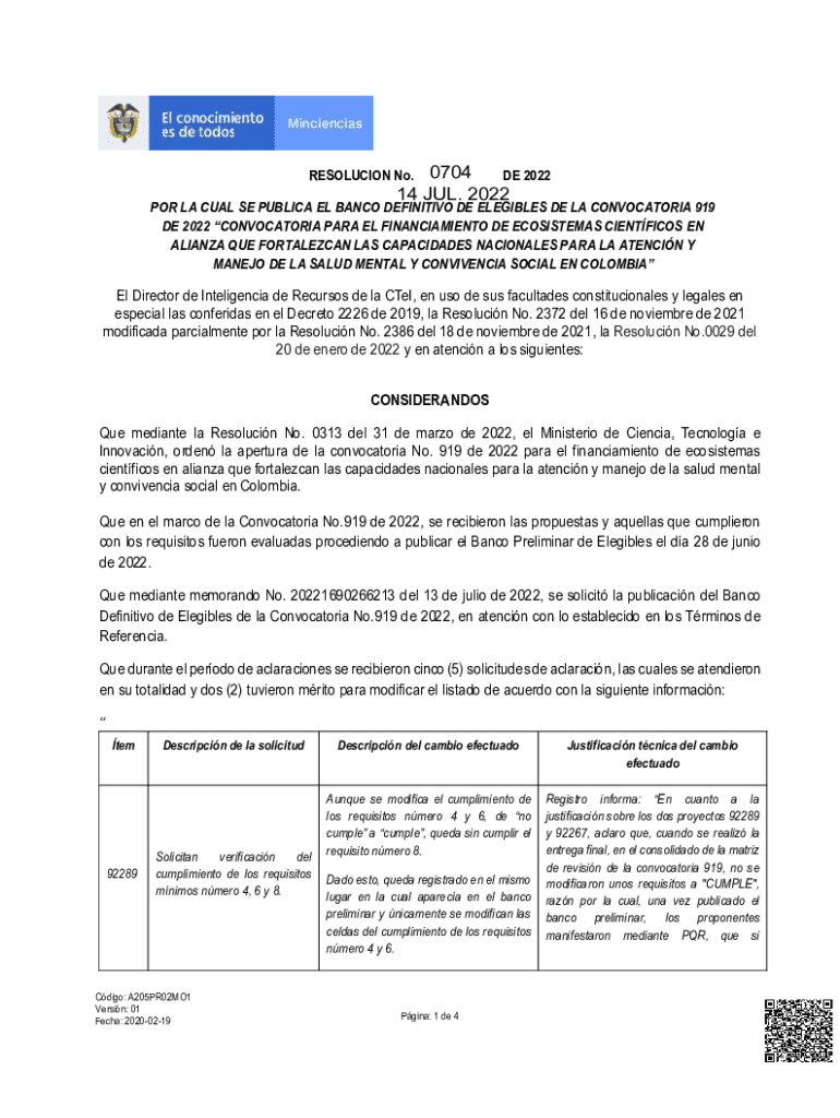 14 JUL. 2022POR LA COAL SE PUBLIC AEL BANCO DEFINITIVE DE ELIGIBLE DE LA CONVOCATORIA 919