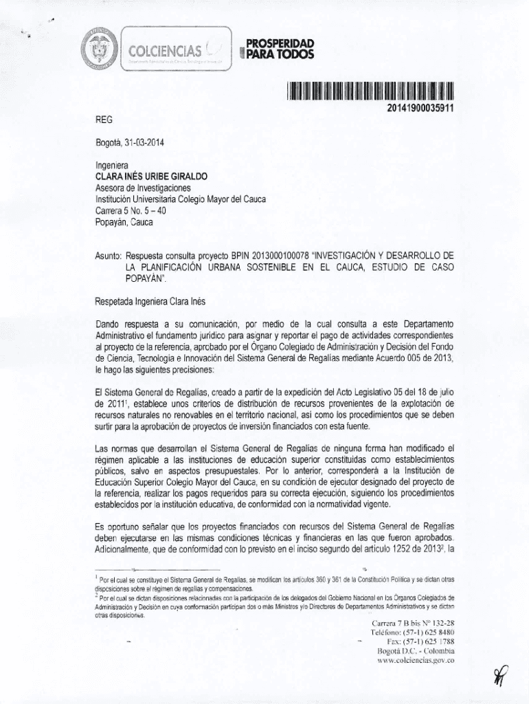 \”@COLCIENCIAS\'PROSPERIDADIPARA TODOS111111111111111111111111111111[111111111111111111[11111111111111111111111111111120141900035911 REG Boot,31032014 Genera CLARA INS TRIBE GIRALDO Assort DE Investigations