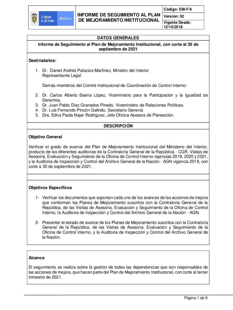 Get the free Informe de Seguimiento al Plan de Mejoramiento Institucional ...