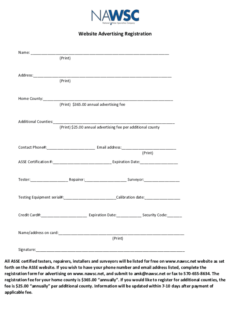 The nawscnet10website-registration-form-nawscwebsite advertising registration is a form for registering advertising on the Nawsc website.