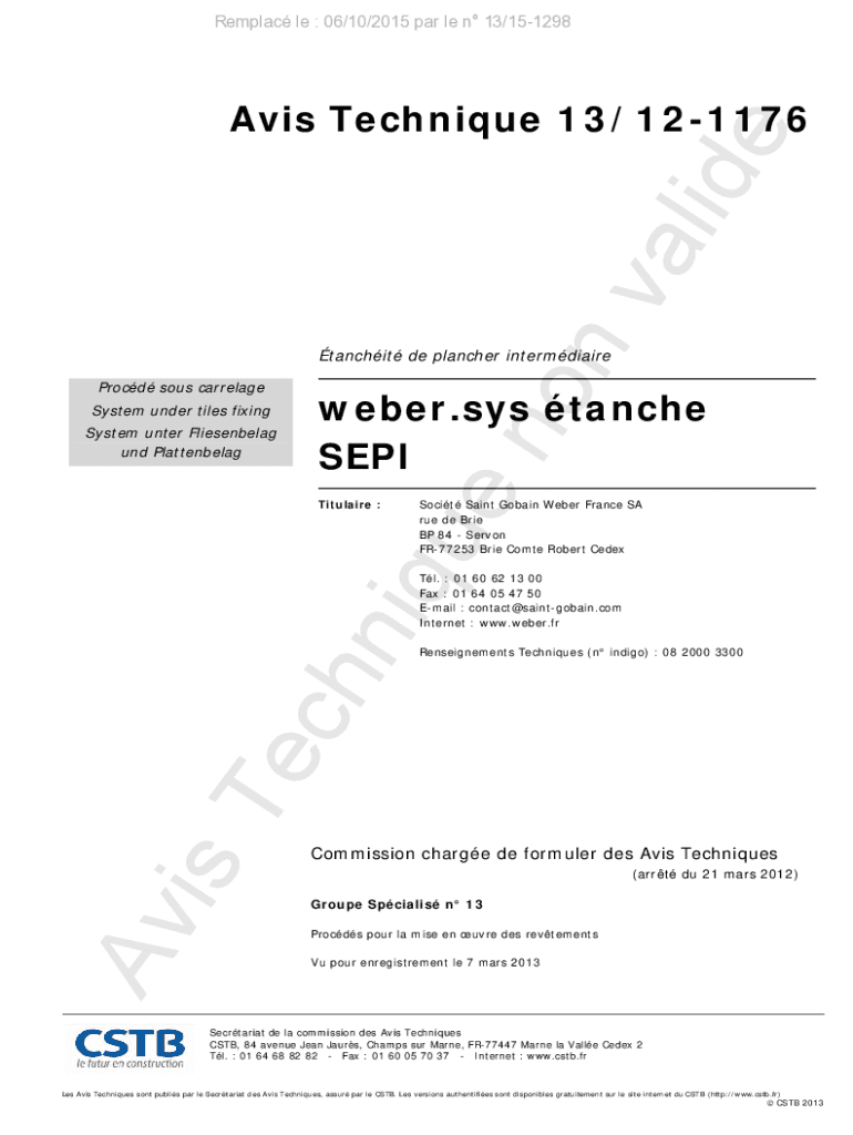 Obtenir le gratuit 13/12-1176. Avis Technique