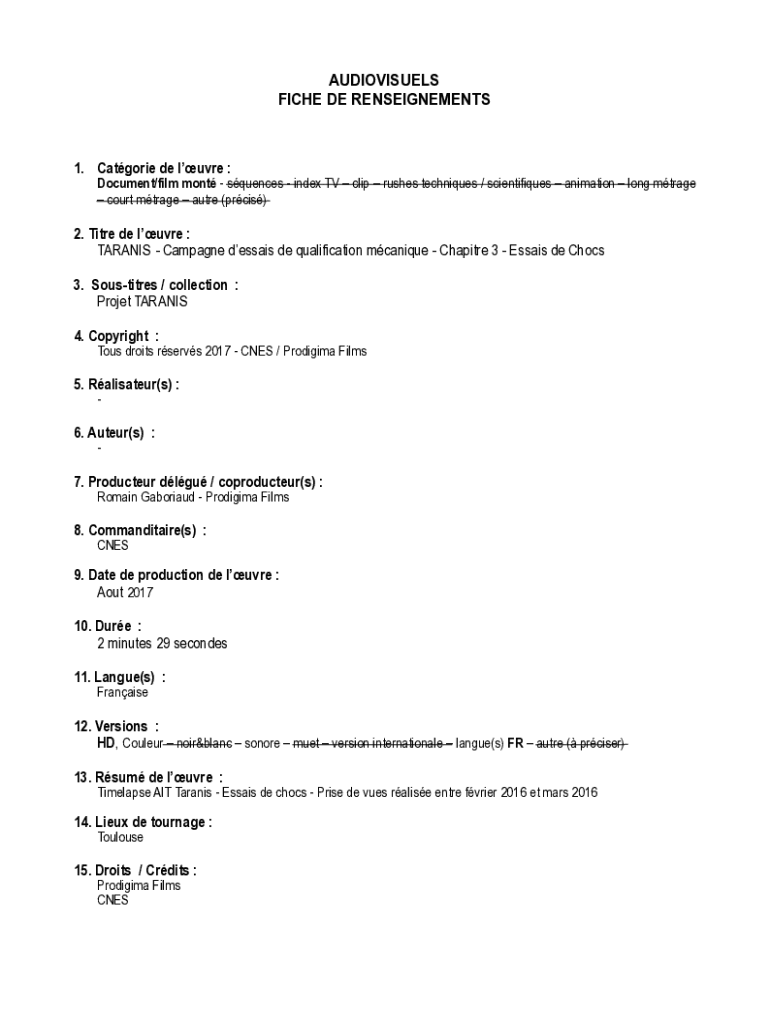 Comment remplir fiche de renseignements audiovisuels?