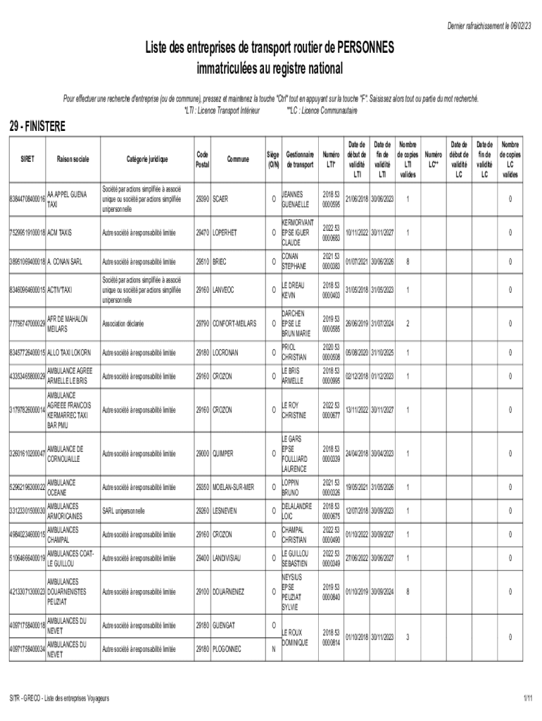 Denier rafraichissement LE 06/02/23Liste DES enterprises DE transport router DE PERSONNEL