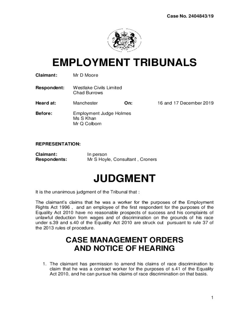 Get the free EMPLOYMENT TRIBUNALS JUDGMENT - GOV.UK