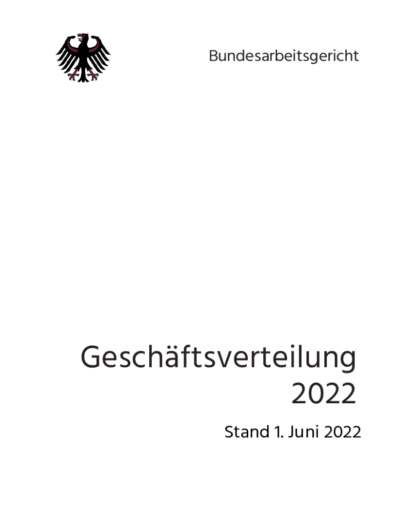 BundesarbeitsgerichtGeschftsverteilung 2022Stand 1. June 2022Geschftsverteilung for was Bundesarbeitsgericht 20225A. Vorbemerkungen. 6B. Geschftsverteilung 8C. Besetting her Senate. 18 1Senate