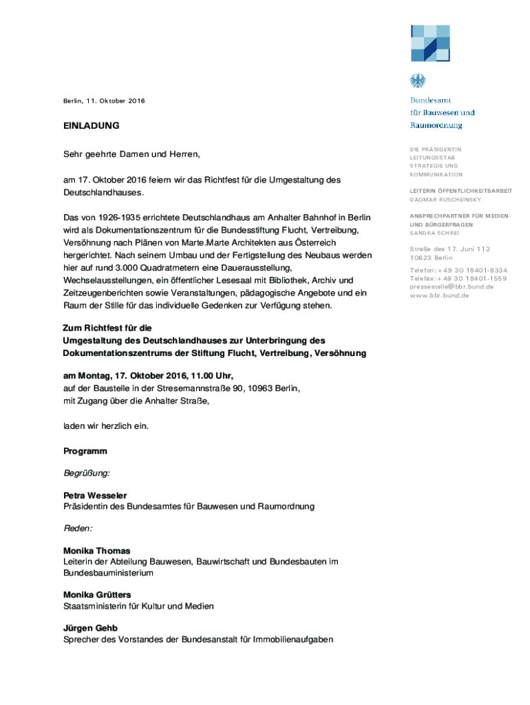 Berlin, 11. October 2016EINLADUNG