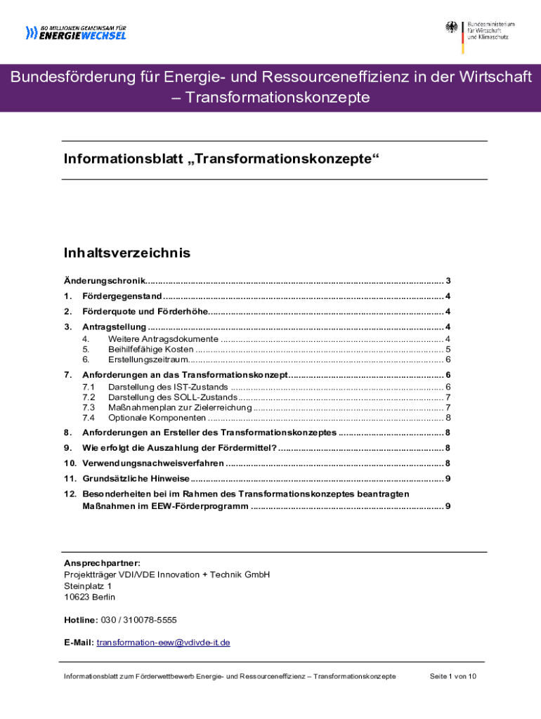 TransformationskonzepteInformationsblatt TransformationskonzepteProduktnummerInhaltsverzeichnis