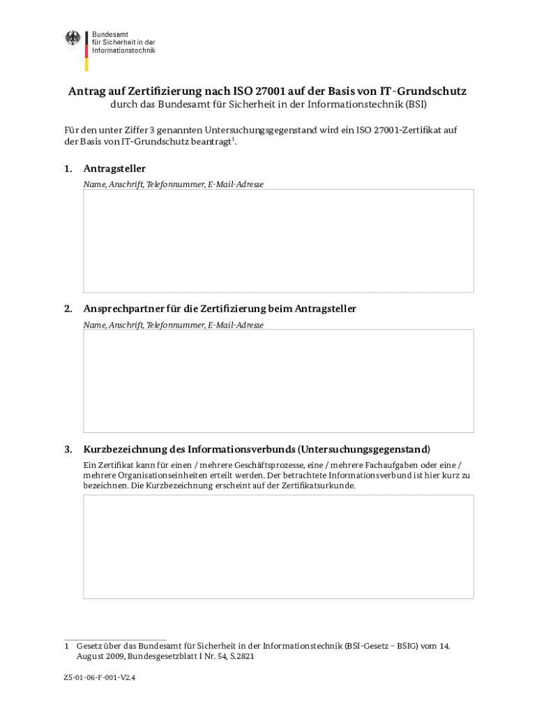 Holen Sie sich kostenlos Antrag auf Zertifizierung nach ISO 27001 auf der Basis von IT ...