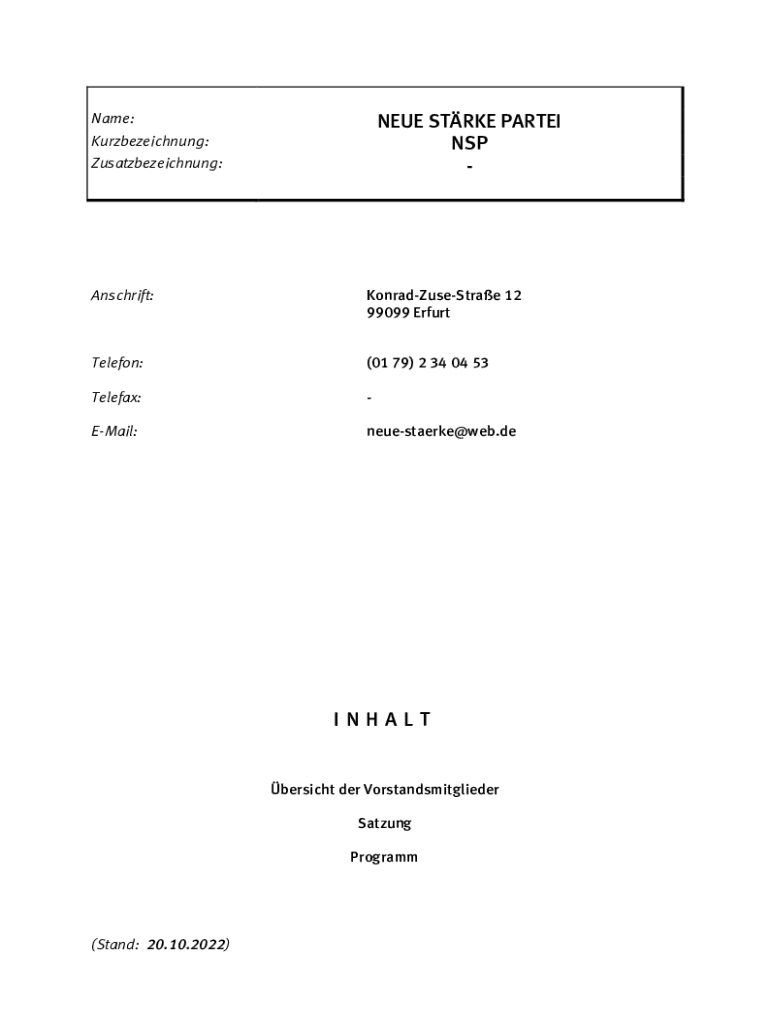 Fill out your neue strke partei nsp online with pdfFiller!