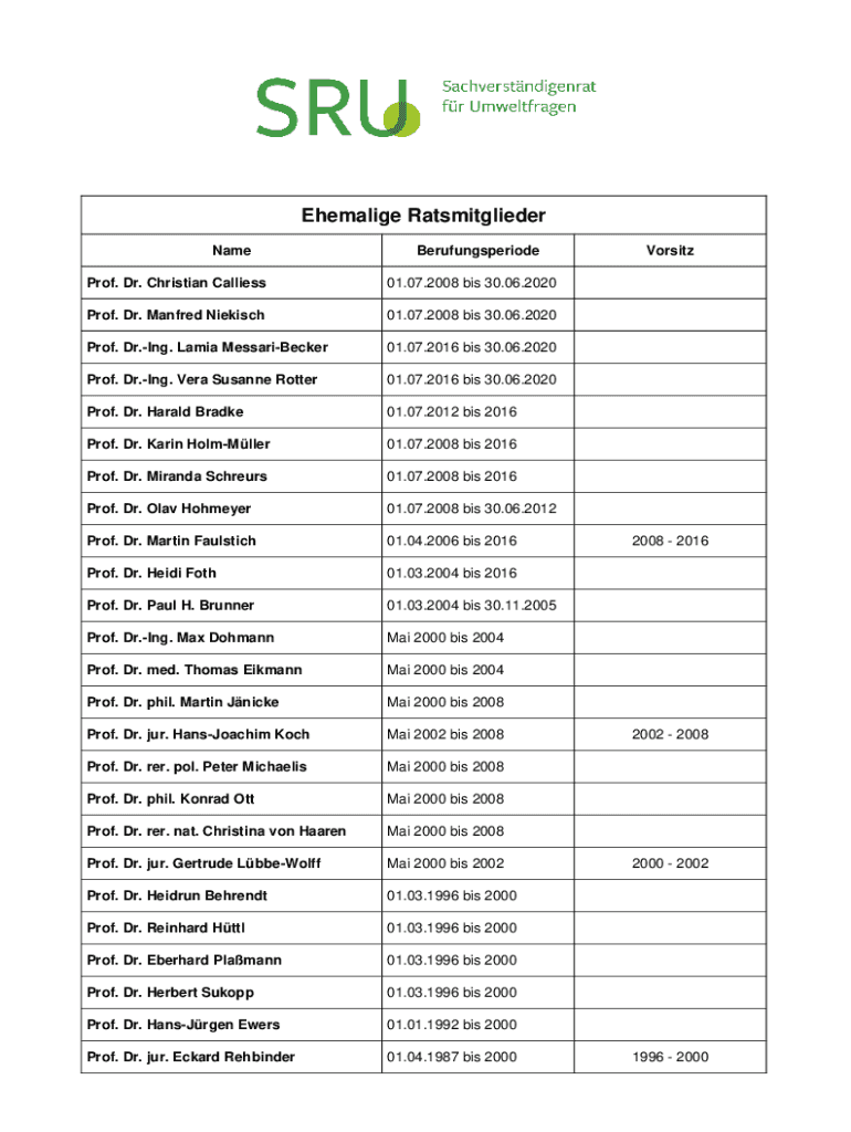 Hematite Ratsmitglieder NameBerufungsperiodeProf. Dr. Christian Calliess01.07.2008 bis 30.06.2020Prof. Dr. Manfred Niekisch01.07.2008 bis 30.06.2020Prof. Dr. ING. Lamina MessariBecker01.07.2016 bis