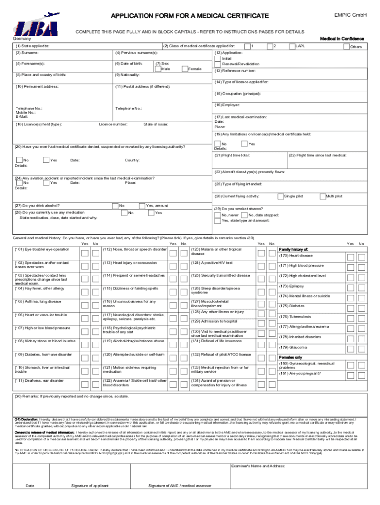 Get the free APPLICATION FORM FOR A MEDICAL CERTIFICATE EMPIC GmbH - LBA