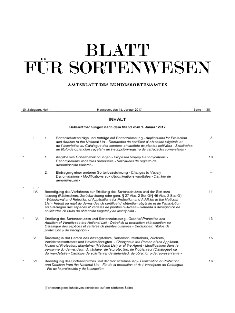 Bekanntmachungen each them Stand com 1. January 2017×I.1. Sortenschutzantrge UND Antigen AUF Sortenzulassung Applications for Protection