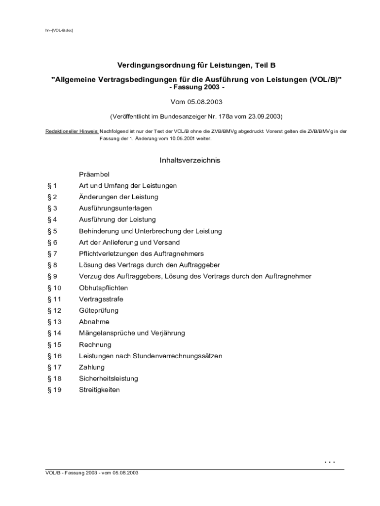 In[VOLB.doc]Verdingungsordnung for Lasting, Rail B