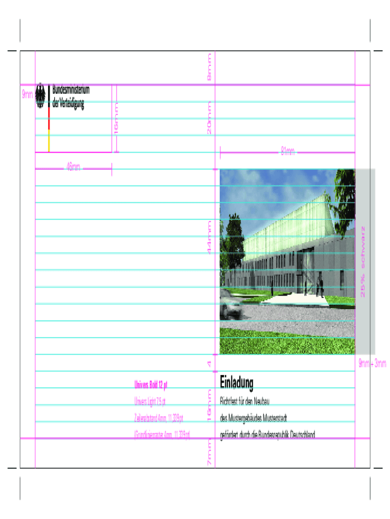 (Grundlinienraster 4 mm, 11,339 pt)44mm25% schwarz16mmUnivers Light 7,5 pt9mm + 3mm7mmUnivers Bold 12 pt446mmEinladung