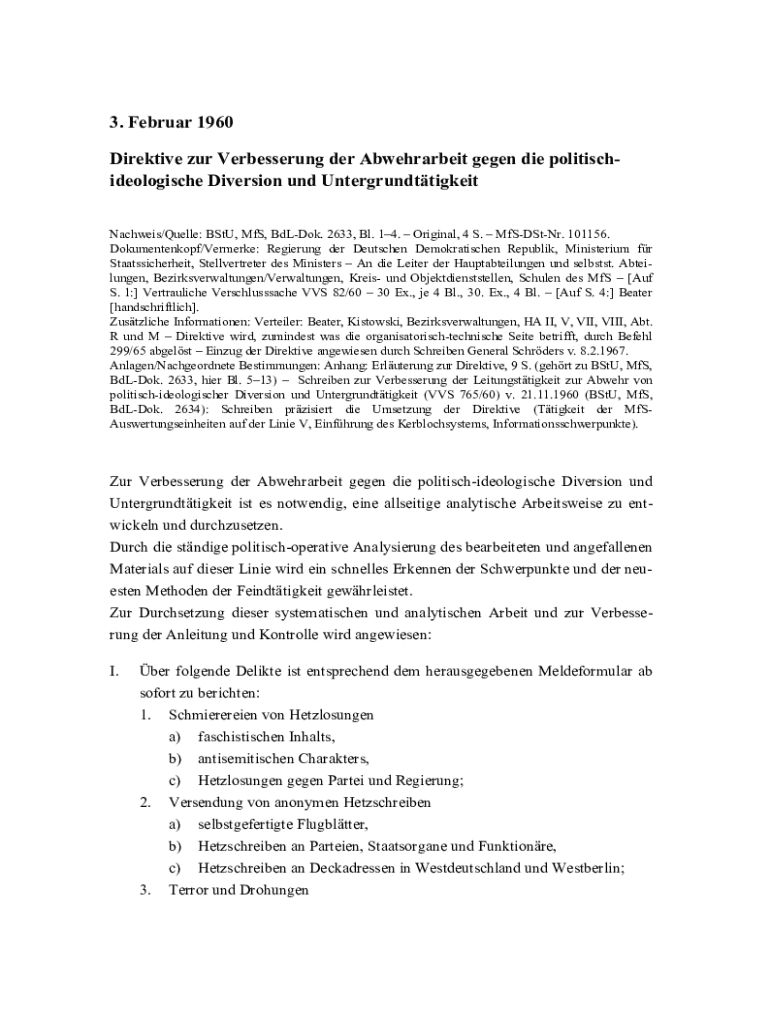 Holen Sie sich kostenlos Direktive zur Verbesserung der Abwehrarbeit gegen die politisch