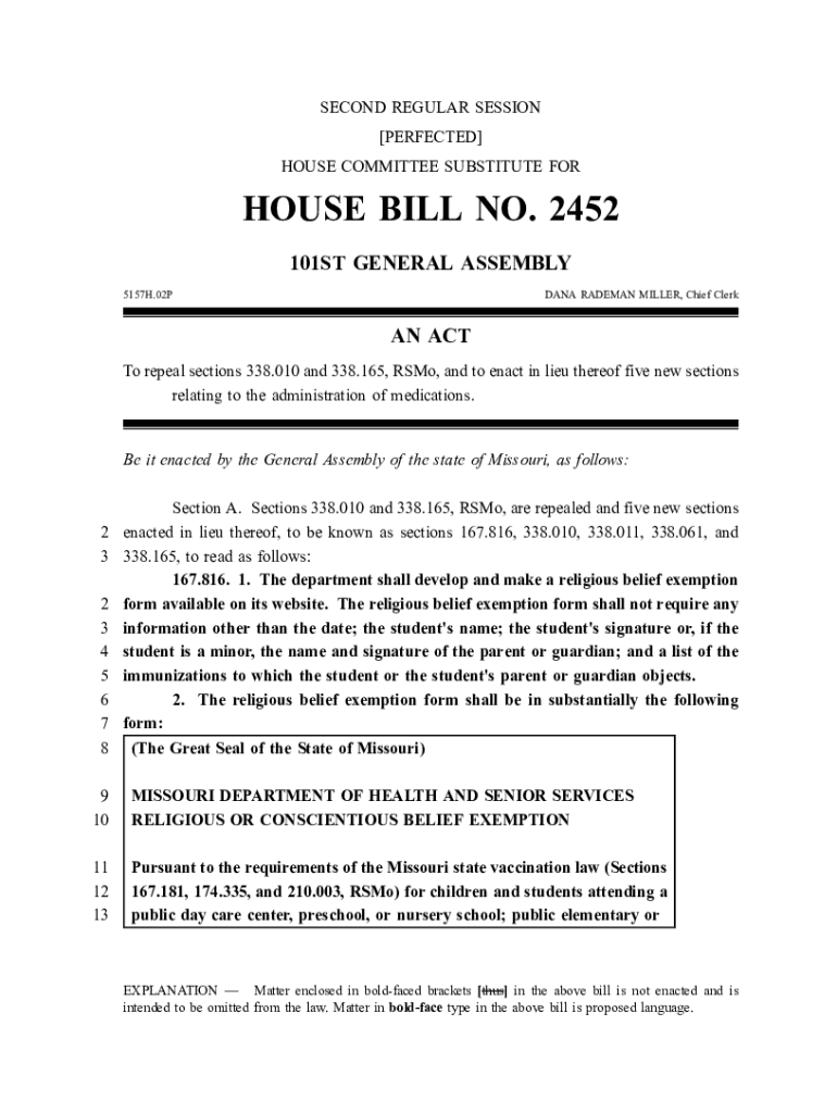 Get the free legiscan.comMOtextSECOND REGULAR SESSION PERFECTED HOUSE BILL NO. 1725