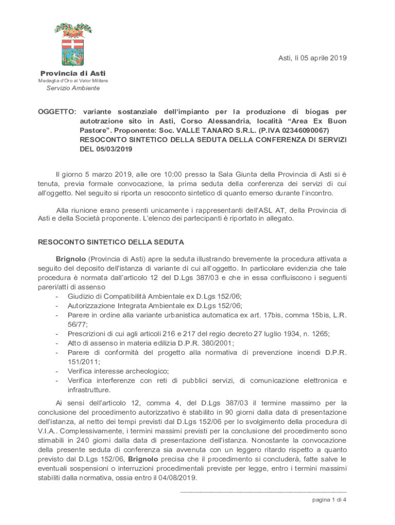 Media door all Valor MilitareServizio AmbienteOGGETTO: variant sostanziale dellimpianto per la production DI biogas per
