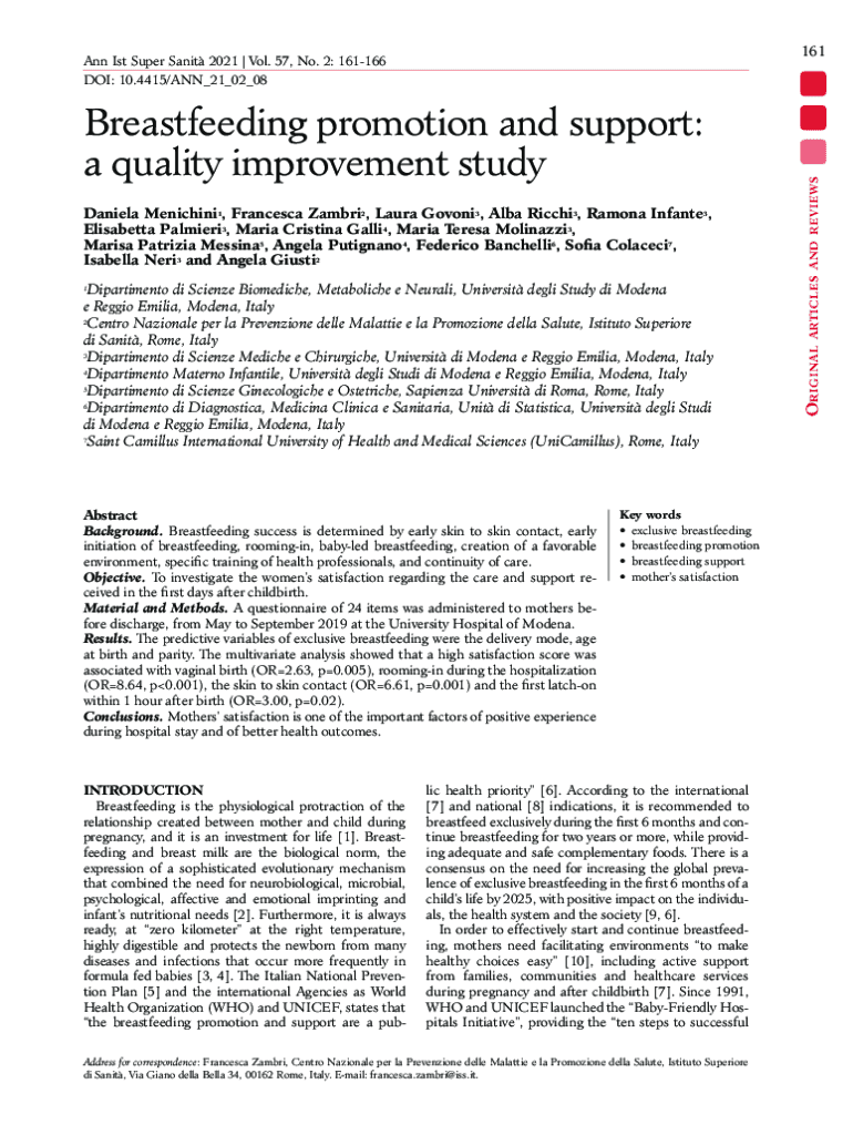 Daniela Menichini1, Francesca Zambri2, Laura Govoni3, Alba Ricchi3, Ramona Infante3, Elisabeth Palmieri3, Maria Cristina Galli4, Maria Teresa Molinazzi3, Marisa Patricia Messina5, Angela Putignano4,