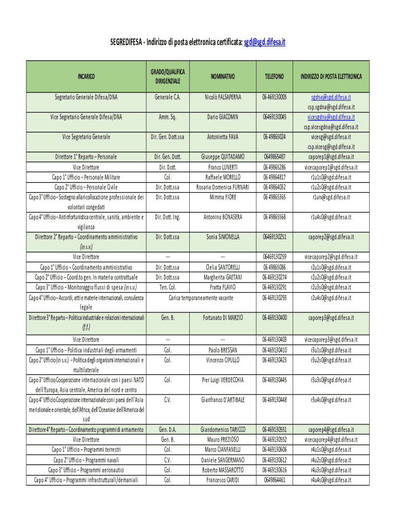SEGREDIFESA Indirizzo DI post electronica certificate: sgd@sgd.difesa.it