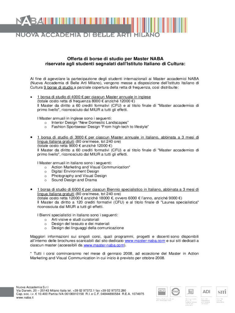 Ottieni il gratuito Offerta di borse di studio per Master e Bienni NABA riservate a ...