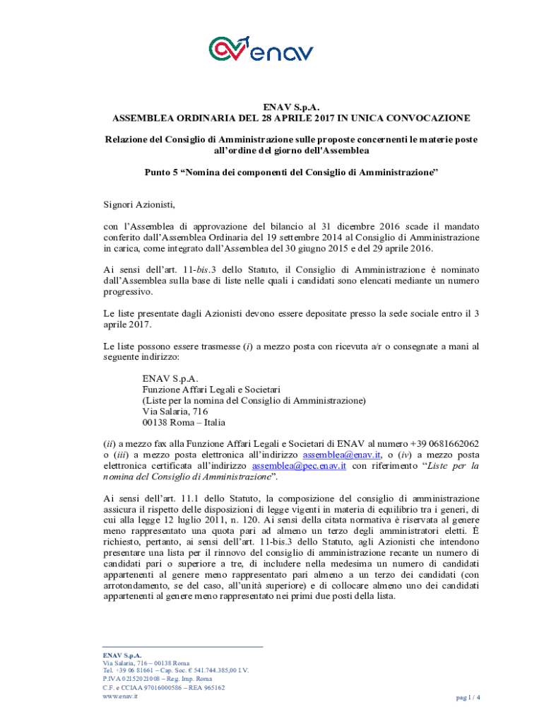 Ottieni il gratuito Nomina dei componenti del Consiglio di Amministrazione - Enav