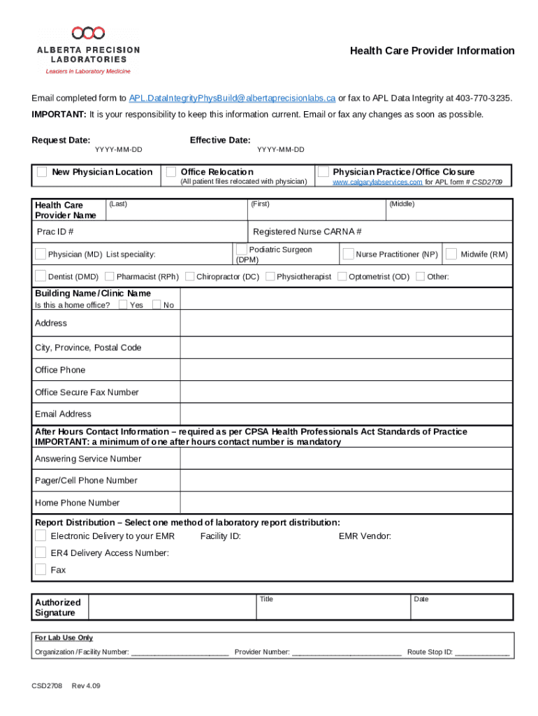 What is Health Care Provider Ination CSD2708. Health Care Provider Ination CSD2708 Form?