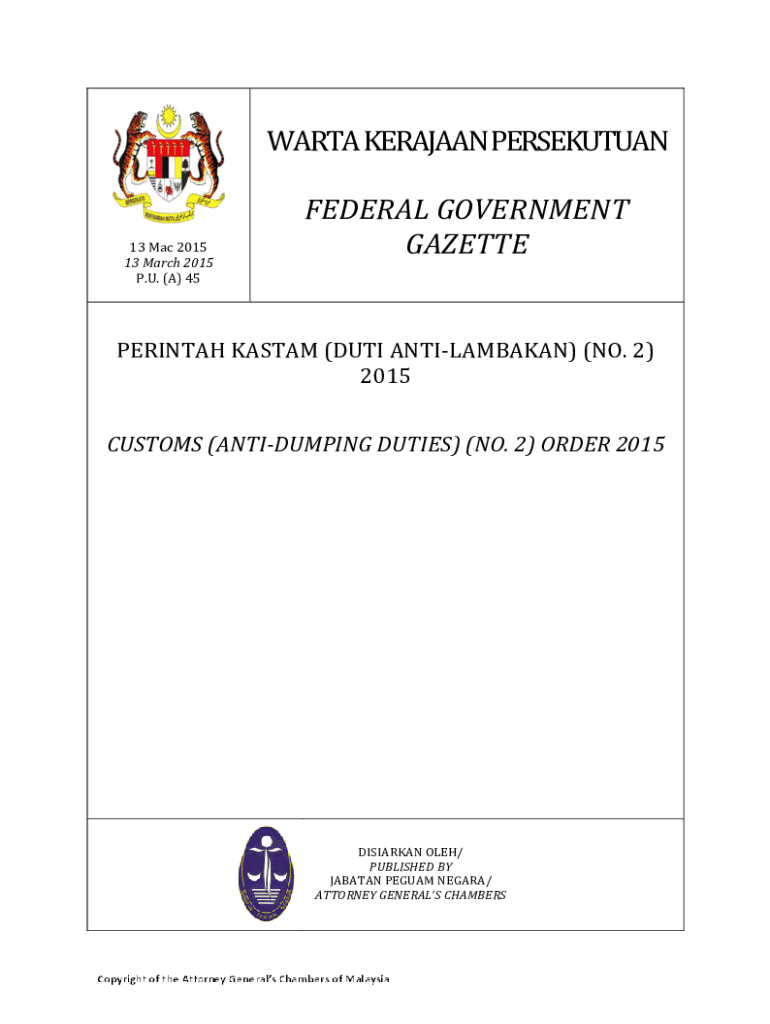 Federal gazette - customsgovmy is a publication that contains official government announcements and notices related to customs regulations and procedures.