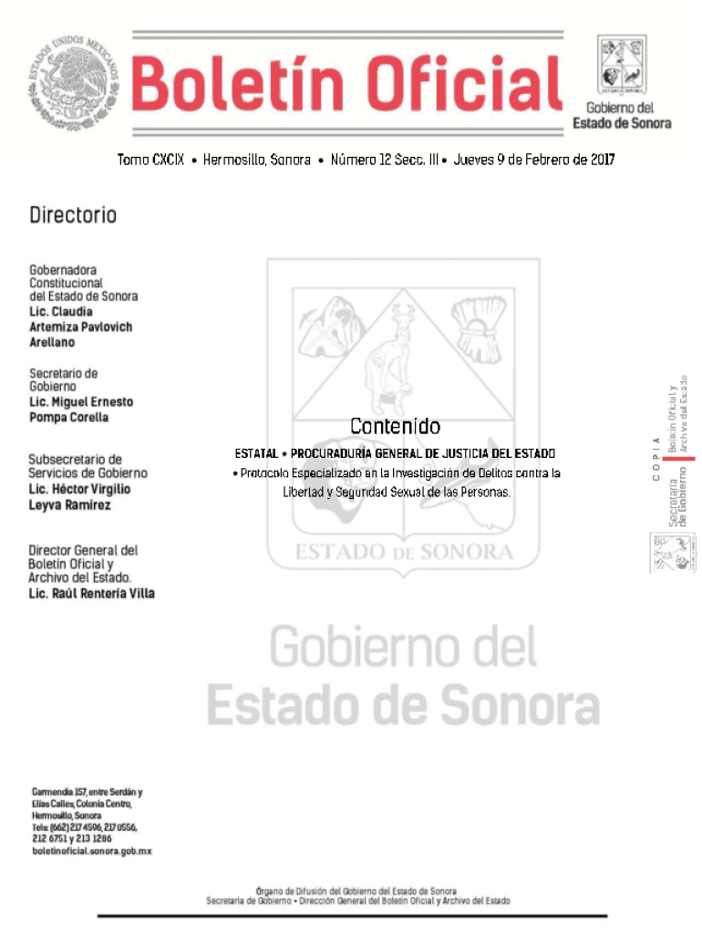 Procurator General de Justicia del Est ado de SonoraNDICE CAPTURE l. SORE EL PROTOCOL ........................................................... ... ..... 3 A. Objective General ....................................................
