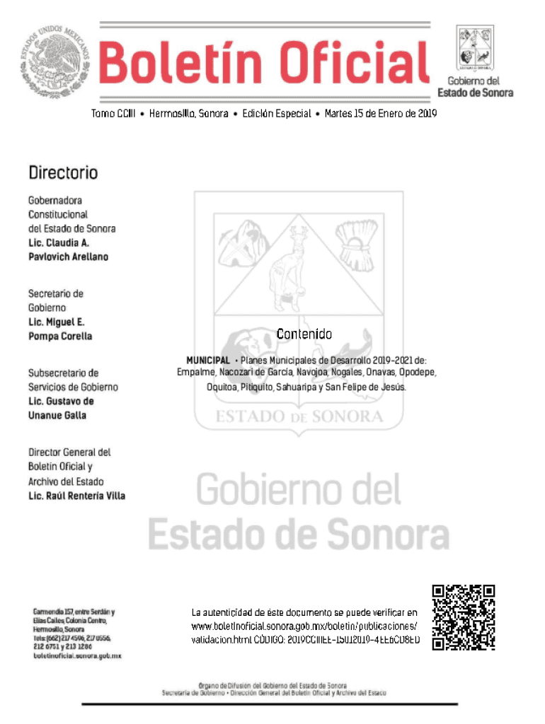 Get the free Empalme, Nacozari de Garca, Navojoa, Nog - Boletn Oficial