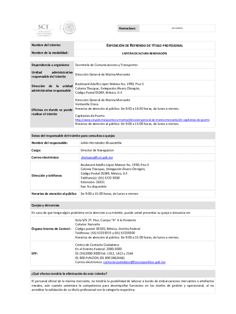 Conclave:Hombre Del termite:EXPEDITION DE REFERENCE DE TTU LO PROFESIONALNombre de la modality: Dependence u organism(EN TERMITE)CAPITAL DE ALT URA RENOVACINSecretara de Comunicaciones y TransportesUnidad