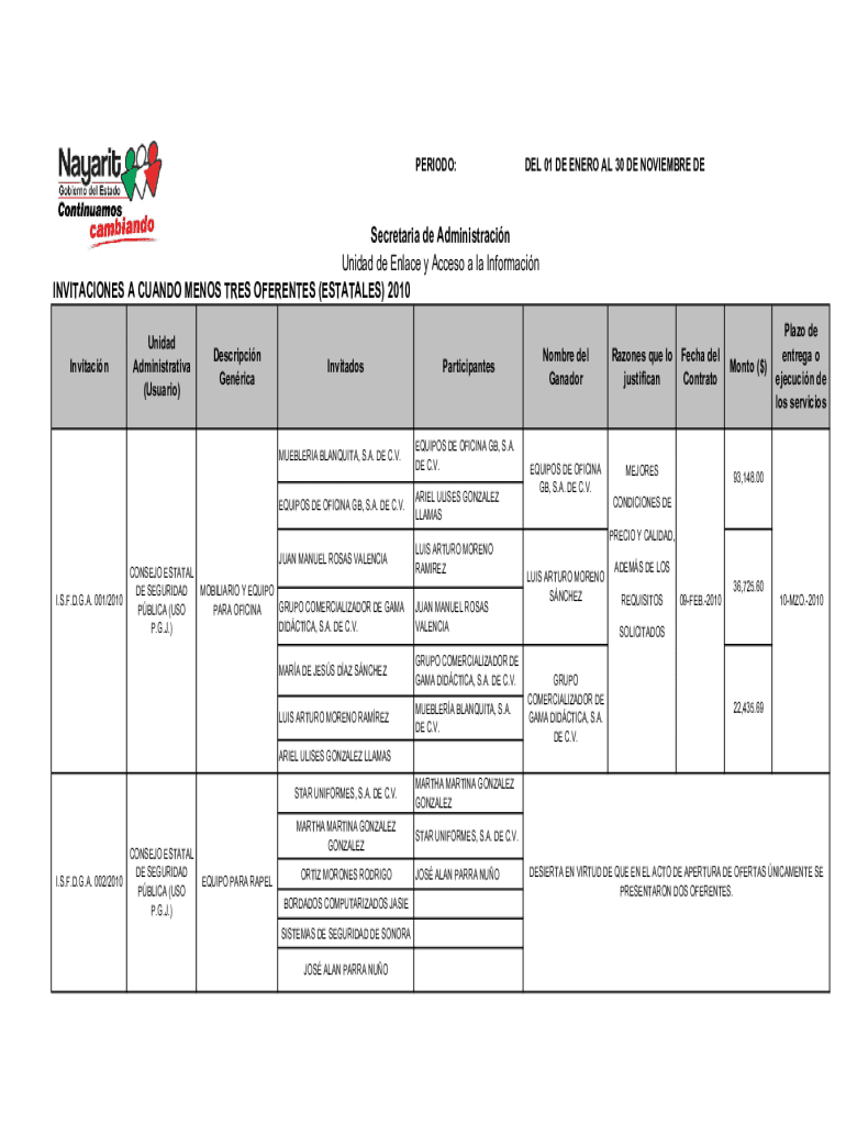 Invitation. S.F.D.G.A. 001/2010Unidad
