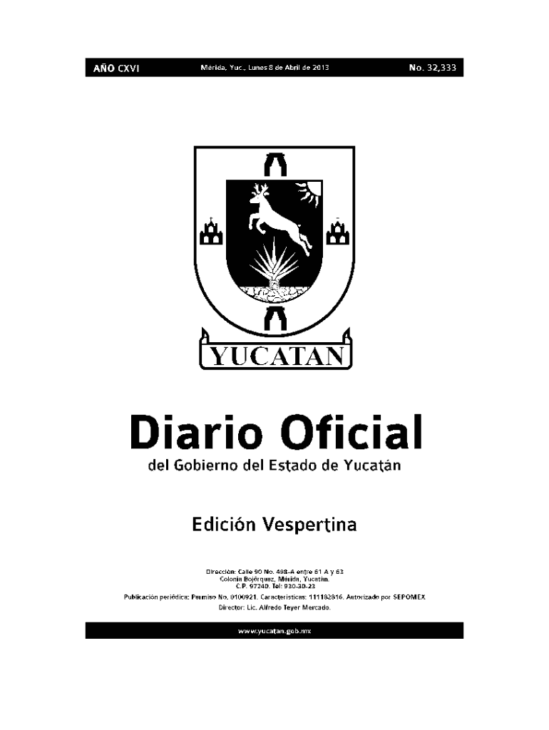 REGINA 2DIARIO OFICIALMRIDA, PUC., LINES 8 DE APRIL DE 2013.SUMARIOGOBIERNO DEL ESTATE POWER EXECUTIVE SECRET NERO 53 SECRET QUE REFORM AEL SECRET NERO 73 PUBLICAN EN EL DARIO OFFICIAL DEL GOVERNOR