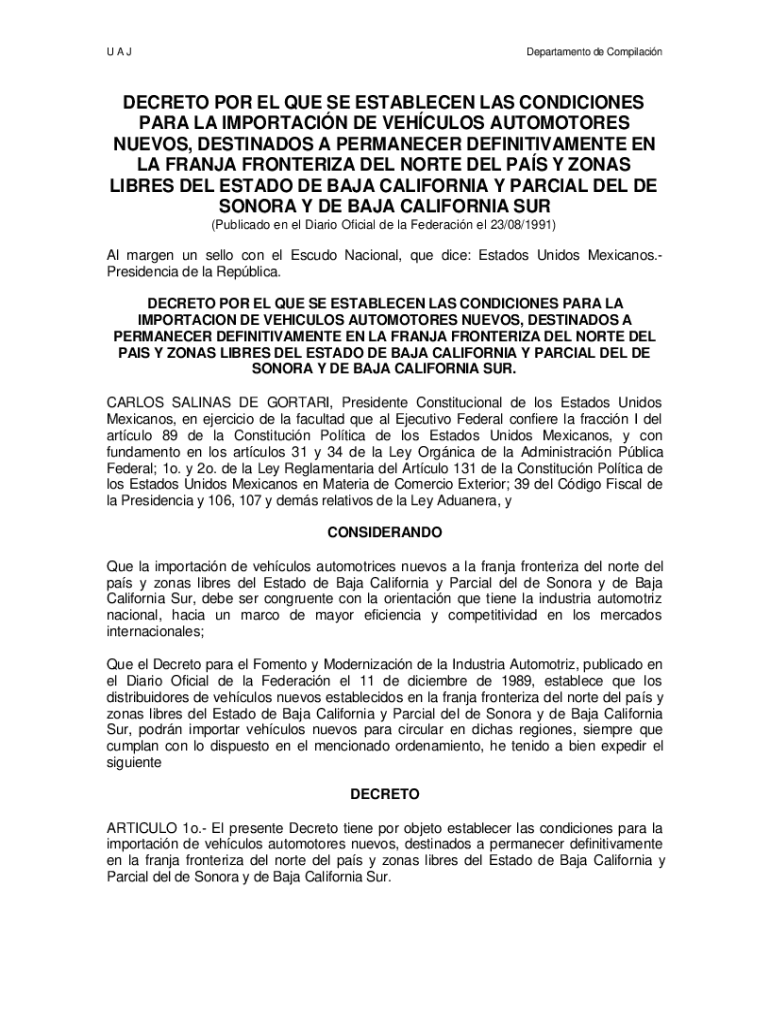 UAJDepartamento de CompilacinDECRETO POR EL QUE SE STABLEMEN LAS CONDITIONS