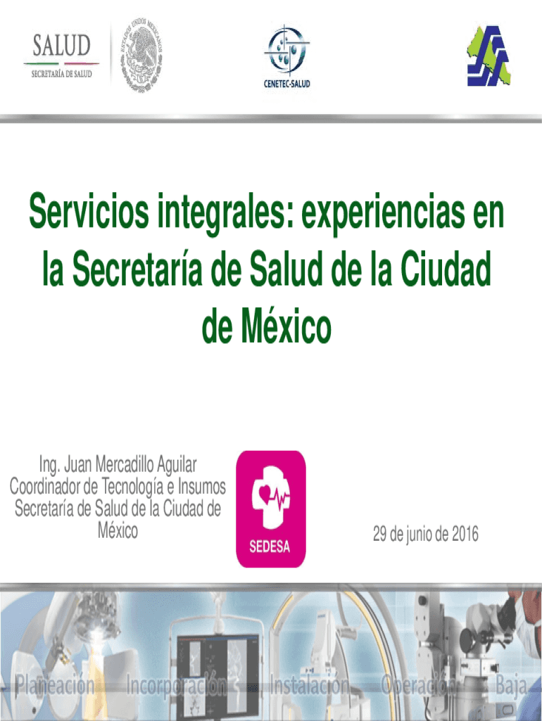Services integrals: experiences en la Secretary de Salud de la Ciudad de Mxico ING. Juan Peccadillo Aguilar Coordinator de Tecnologa e Insults Secretary de Salud de la Ciudad de Mxico29 de junior