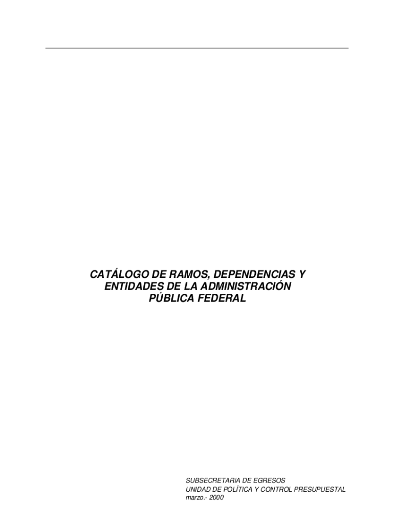 CAT LOGO DE RAMOS, DEPENDENCIES Y ENFILADES DE LA ADMINISTRATION PBL ICA FEDERALSUBSECRETARA DE EGRESS UNITED DE POLITICAL Y CONTROL PRESUPUESTAL Mario. 2000Contenido Introduction................................................................................................................................5